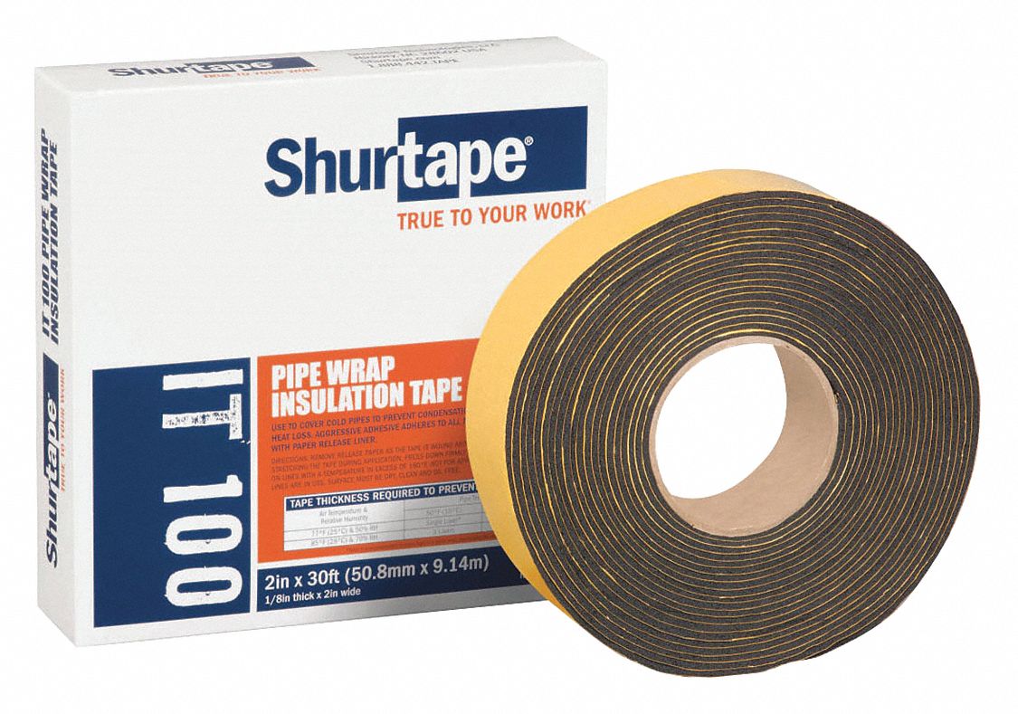 Designed for covering cold pipes to prevent condensation dripping or covering hot pipes to reduce heat loss on a variety of pipe surfaces. Shurtape it 100 foam pipe wrap insulation tape. This item shurtape it 100 foam pipe wrap insulation tape. 5 0 out of 5 stars nice insulation tape easy to handle and to wrap around refrigeration pipes reviewed in the united states on 18 may 2018 size name.